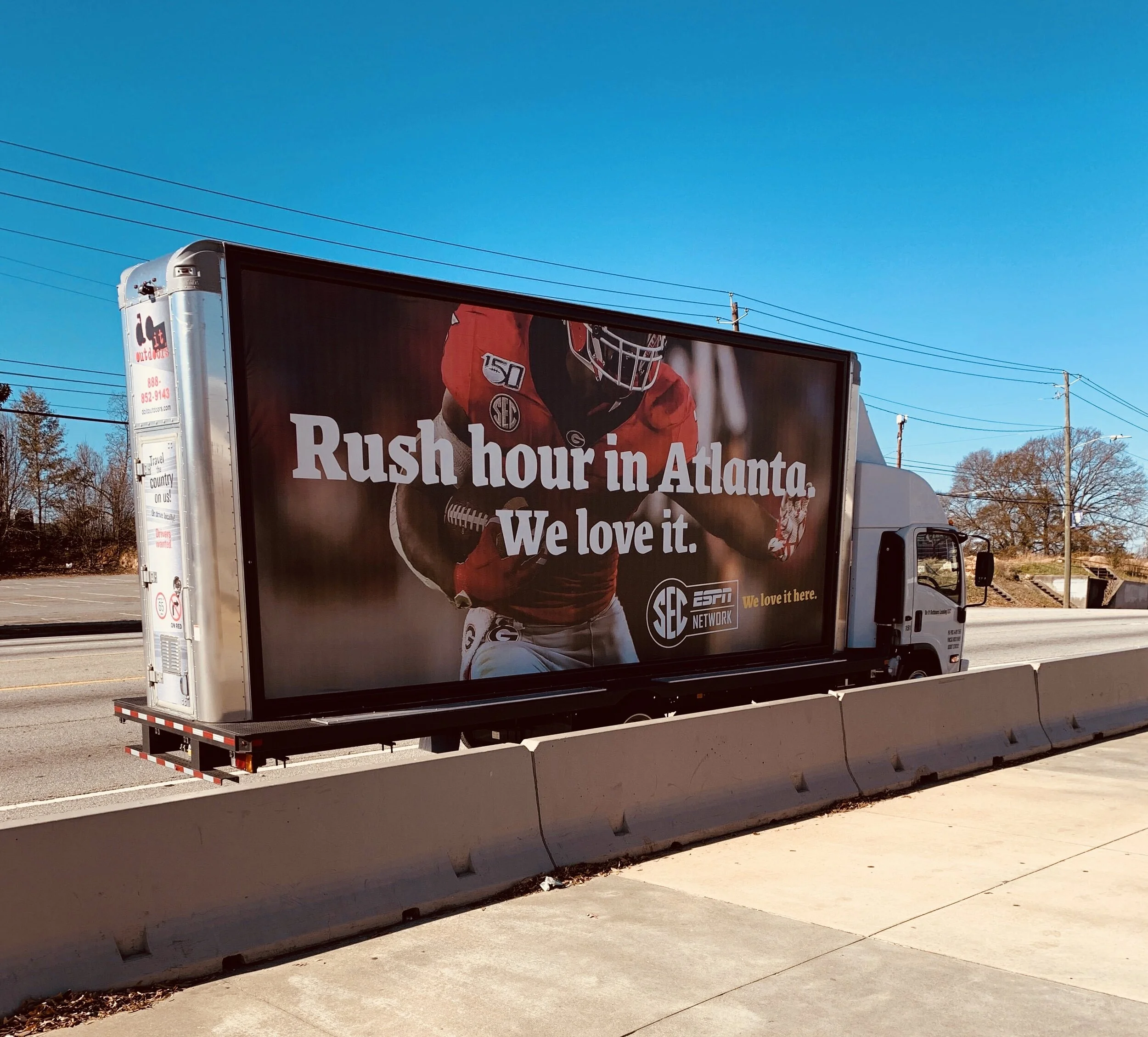 We also had this truck drive around Atlanta during the SEC championship weekend because there’s traffic in Atlanta, so there were people in cars, and thus they were able to see the message that we put on the truck. Also, the message is funny because it’s using car terminology but it’s about football.